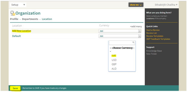 Click on Add New Location & Choose Currency then click Save button to add new location.